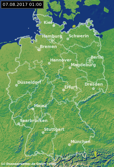 Einen nassen ersten Augustsonntag gab es gestern vor allem im hohen Norden sowie südlich der Donau. Hier wurden vor allem in Teilen Oberbayerns, dem Chiemgau sowie dem Berchtesgadener Land regionale Tagesniederschlagsmengen von >35 l/m² verbucht. In den anderen Landesteilen, z. B. im Sauerland, gab es nur geringe Niederschläge, in den meisten Landesteilen blieb es aber trocken.