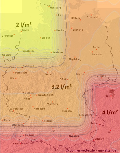 Am Sonntag zogen in der ersten Tageshälfte noch dichte Regenwolken über den Osten und Südosten des Landes. Die Schauer, die aus diesen Wolken niedergingen, fielen insbesondere an den Alpen sowie in der Lausitz und am Spreewald auch kräftiger aus. Dabei kamen lokal mehr als 35 Milliliter Niederschlag pro Quadratmeter zusammen.
