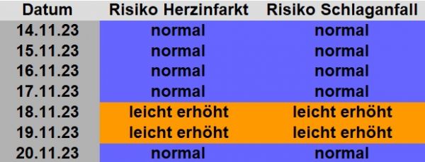 Die einströmende mildere Luft sorgt zum kommenden Wochenende für leicht erhöhte Schlaganfall- und Herzinfarktrisiken.