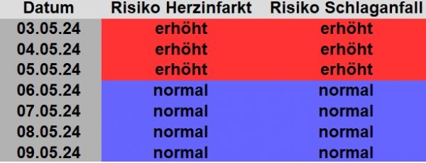 Die Schlaganfall- und Herzinfarktrisiken bis zum 09.05.2024