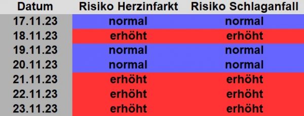 Luftdruckschwankungen sorgen am Samstag sowie in der neuen Woche zwischen Dienstag und Donnerstag für erhöhte Schlaganfall- und Herzinfarktrisiken.