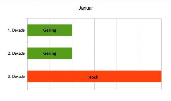 Unsere Grafiken, die wir nun regelmäßig um jeden Monatswechsel in der Rubrik "Fit bei jedem Wetter" veröffentlichen, geben Aufschluss über die Risiken folgender Infektionskrankheiten in den einzelnen Monatsdekaden: