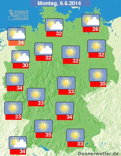 Uns erwartet ein richtig heißer Tag mit Rekordwärme vor allem im Osten und Süden