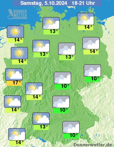 In der Nacht zum Sonntag halten sich im Osten noch meist dichte Wolken. Im übrigen Bundesgebiet klart der Himmel verbreitet auf oder es ziehen noch ein paar lockere Wolkenfelder durch, dazu bleibt es trocken. Die Temperatur sinkt auf 10 Grad in Dresden und bis 3 Grad in Nürnberg.