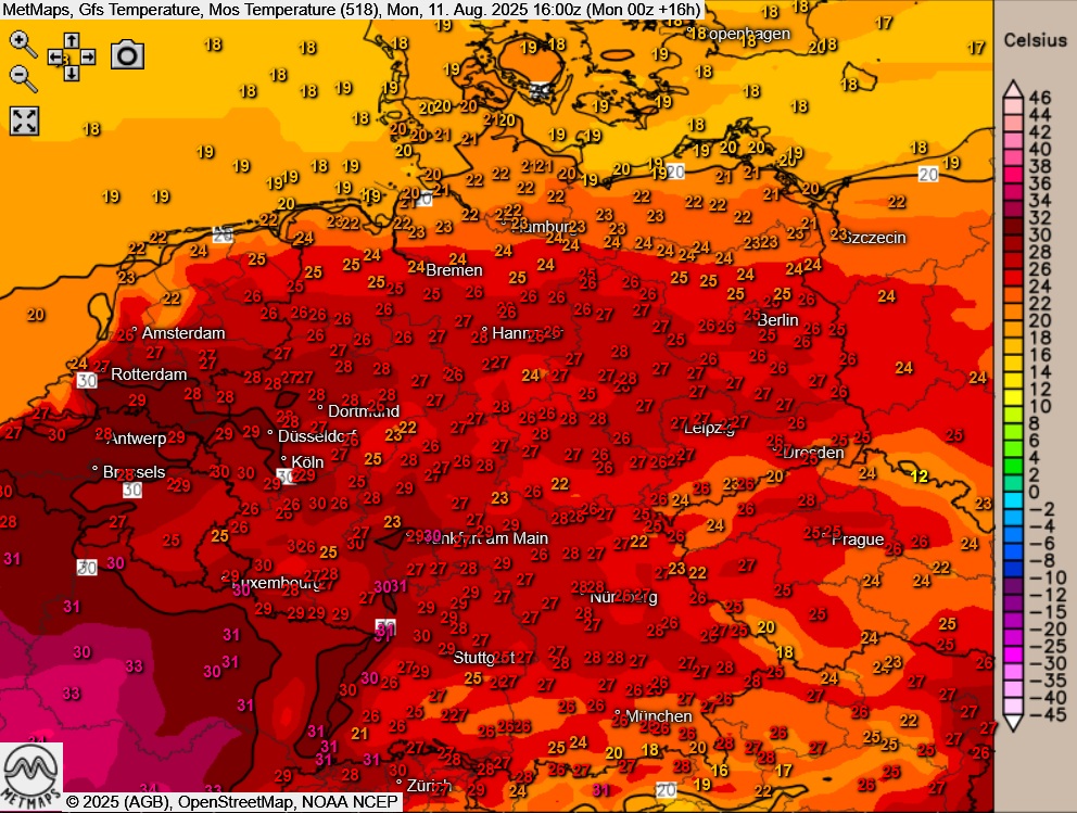 Wo der Montagnachmittag bereits Hitzewerte bringt!