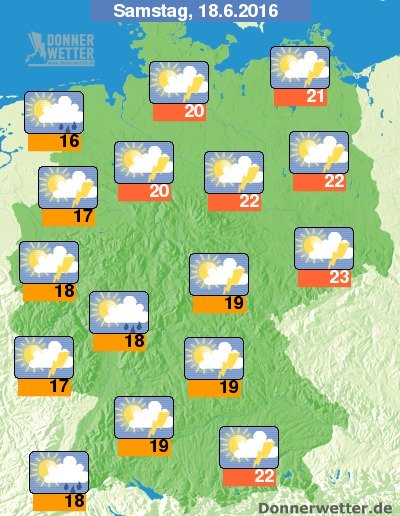 Heute scheint besondern am Vormittag über weiten Landesteilen die Sonne und bis auf vereinzelte Schauer über der Westhälfte ist es auch noch trocken. Bereits am frühen Mittag können sich jedoch praktisch im ganzen Land wiederum zum Teil kräftige Schauer und Gewitter entwickeln. Die Temperatur steigt auf 16 Grad an der Nordsee und etwa 23 Grad in der Niederlausitz.