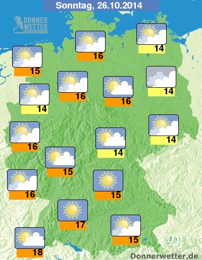 Der Sonntag startet vor allem im Süden und Südwesten hier und da mit Nebel, sonst ist es aber vielerorts auch schon aufgelockert bewölkt. Im Tagesverlauf kann sich hier und da die Sonne auch häufig zeigen, regional bleibt es aber auch stärker bewölkt, dazu bleibt es aber trocken. Die Temperatur steigt auf 14 Grad an der Neiße und bis 18 Grad im Oberrheingraben.