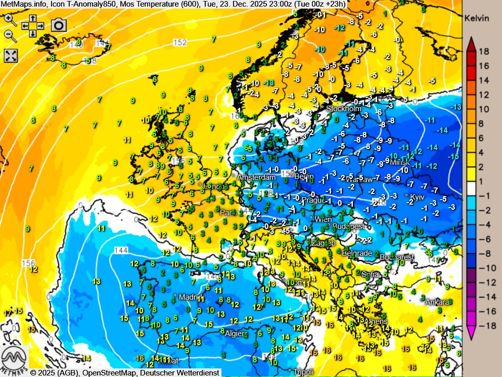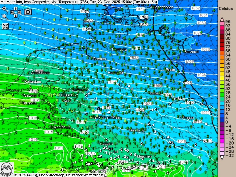 Die Temperaturen erreichen Höchstwerte um 0 bis 7 Grad.