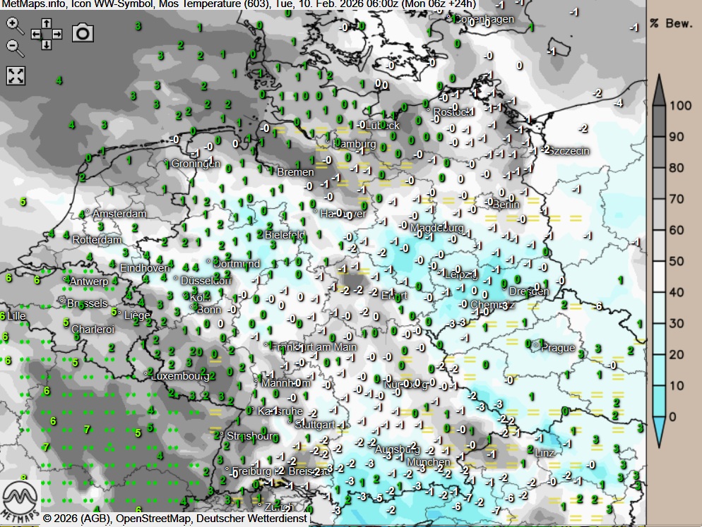 Höchstwerte am Dienstag um 0 bis 11 Grad.
