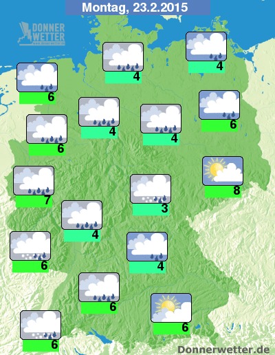 Heute ist es im Osten und Süden zunächst noch trocken, aber schon meist stark bewölkt, sonst ziehen bereits dichte Wolken durch und es fällt immer wieder Regen, gebietsweise auch Schneeregen oder Schnee. Am Nachmittag ziehen Regen, Schneeregen oder Schnee auch in den Osten und Süden des Landes. Die Höchstwerte liegen bei 3 Grad im Vogtland und bis 8 Grad in Dresden. An den Küsten weht noch ein teils starker Wind mit stürmischen Böen.