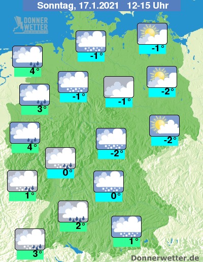 Heute Nachmittag ist es im Osten und Nordosten zwar meist stark bewölkt, jedoch trocken. Ansonsten ziehen von Westen her dichte Wolken durch und es fällt zeitweise Schnee, in den westlichsten Landesteilen überwiegend Schneeregen oder Regen. Die Temperatur steigt auf -2 Grad in Dresden und bis 4 Grad in Köln.
