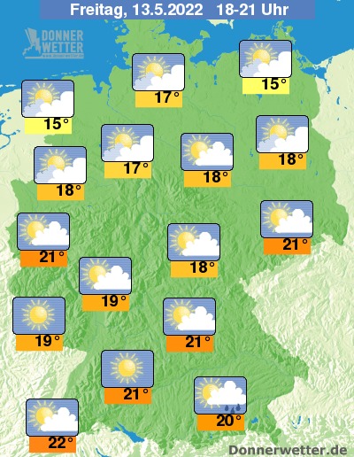 Heute Abend klingen die Schauer im Alpenvorland und im Nordosten meist rasch ab und es lockert verbreitet auf. Im übrigen Land ist es schon überwiegend heiter bis sonnig, teils ziehen auch noch einige Wolken durch, dazu bleibt es trocken. Die Temperatur liegt bei 15 Grad in Rostock und 22 Grad in Freiburg.