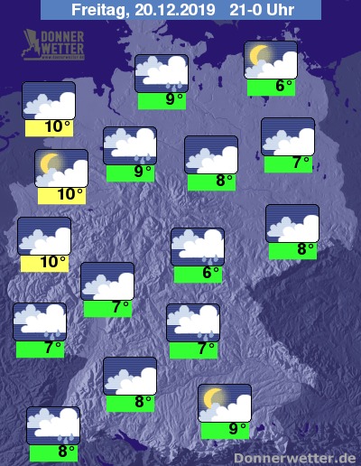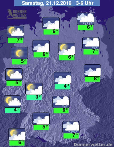 Während der zweiten Nachthälfte erreicht der Regen auch Teile nordöstlich der Elbe und Bayerns. Im Westen klart der Himmel häufiger auf und die Sterne zeigen sich.