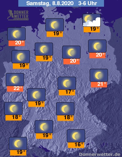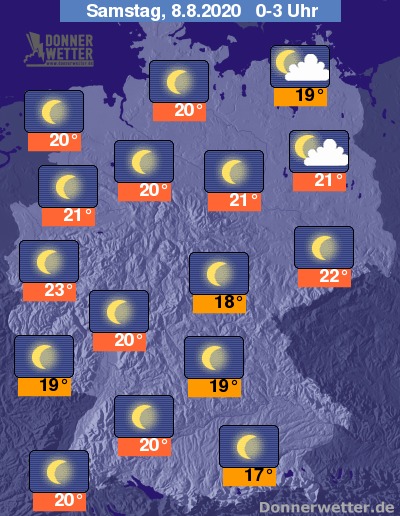 In der Nacht zeigt sich der Himmel über weiten Landesteilen sternenklar, einzelne lockere Wolken beschränken sich in der Nacht auf den Nordosten Deutschlands. Es bleibt aber trocken.