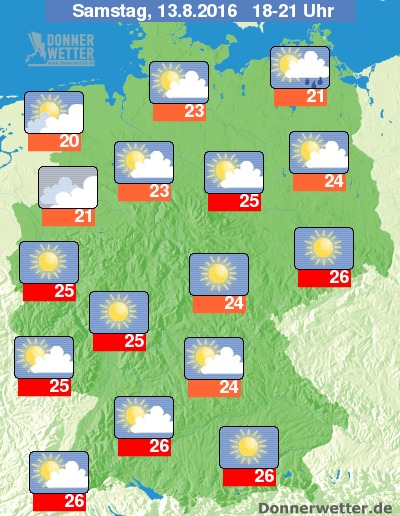 Heute Nachmittag ziehen vor allem nach Nordwesten hin oft viele und zum Teil auch dichte Wolken durch, dazu bleibt es aber meist trocken, am Erzgebirge sind bei teils dichten Wolken vereinzelte Schauer möglich. Im Süden des Landes ist es hingegen verbreitet sonnig und trocken. In den übrigen Landesteilen ist es größtenteils heiter, zum Teil ebenfalls sonnig und dazu auch trocken. Die Temperatur steigt auf 18 Grad in Emden und bis 26 Grad in Freiburg.
