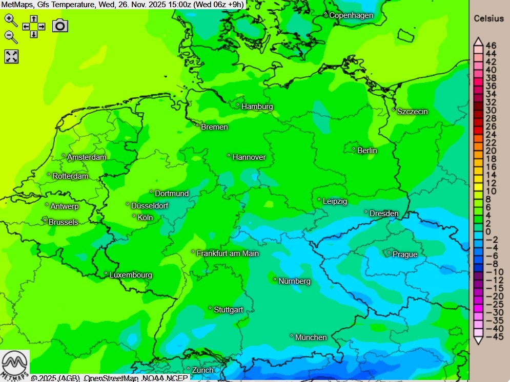 Die Temperaturen erreichen Höchstwerte um 2 bis 7 Grad.