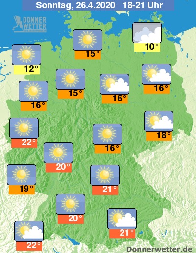 Heute Abend ist es weiterhin meist heiter bis sonnig. Im Ostseeumfeld ziehen hier und da dichte Wolken durch, dabei bleibt es trocken. Die Temperatur liegt bei 10 Grad an der Ostsee und bis zu 22 Grad im Rheinland.