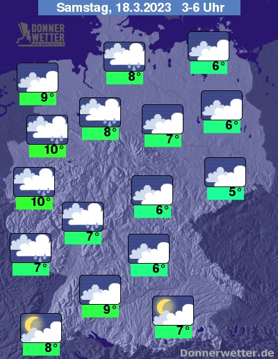 In der kommenden Nacht ist der Himmel über dem Land stark oder dicht bewölkt. Lediglich im Südosten ist es auch noch teilweise locker bewölkt, hier und über der übrigen Südosthälfte Deutschlands bleibt es trocken, während es sonst gebietsweise regnen kann. Die Temperatur sinkt auf 10 Grad am Niederrhein und bis 5 Grad an der Neiße.