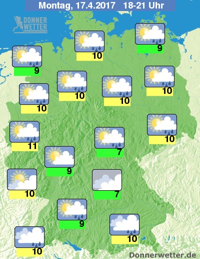 Heute Abend erwartet uns meist ein Mix aus Sonnenschein und zeitweise dichten Wolken mit einzelnen Schauern. Im Süden bleibt es bedeckt und es fällt hier teils kräftiger und langanhaltender Regen. Die Temperatur liegt bei 7 bis 11 Grad.