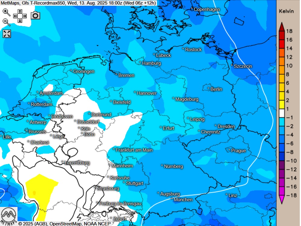 Temperaturabweichung Mittwoch, 18:00 Uhr