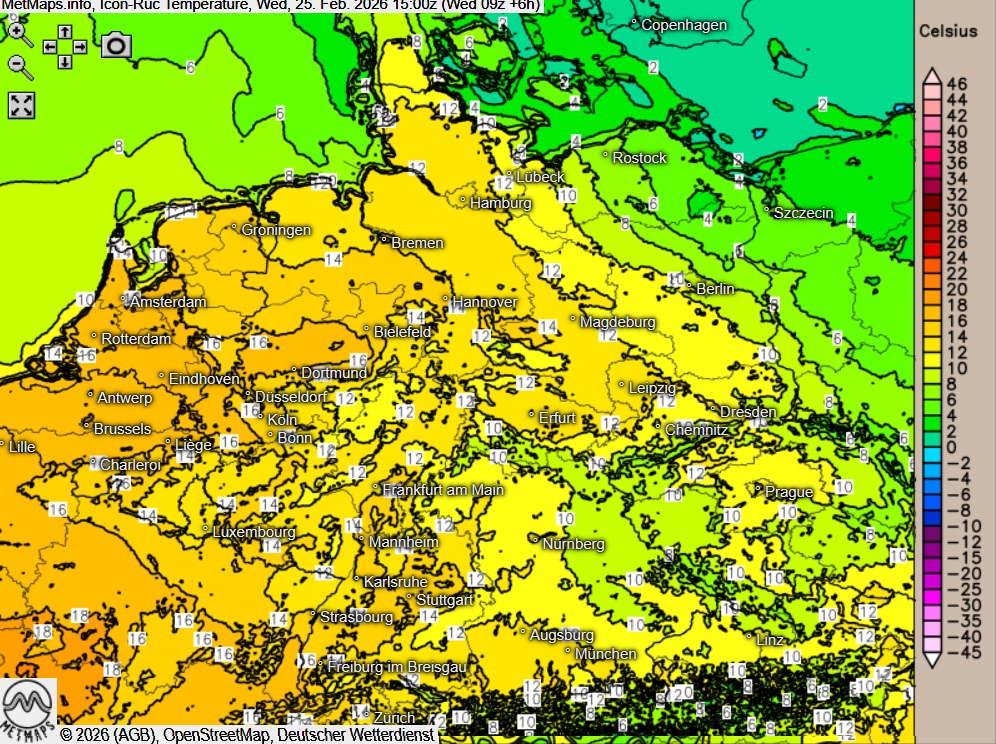 Höchstwerte um 7 bis 18 Grad.