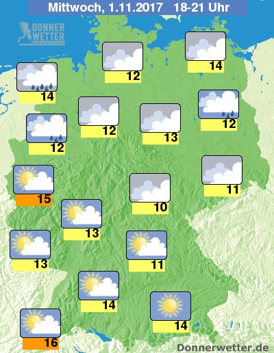 Heute Abend ist es über der Nordosthälfte weiterhin wolkenverhangen und gebietsweise fällt auch Regen. Im Süden und Westen scheint hingegen häufig die Sonne und es ziehen meist nur lockere Wolken durch, dabei bleibt es trocken. Die Temperatur liegt bei 10 bis 16 Grad. An der Nordsee weht ein teils stürmischer Wind.