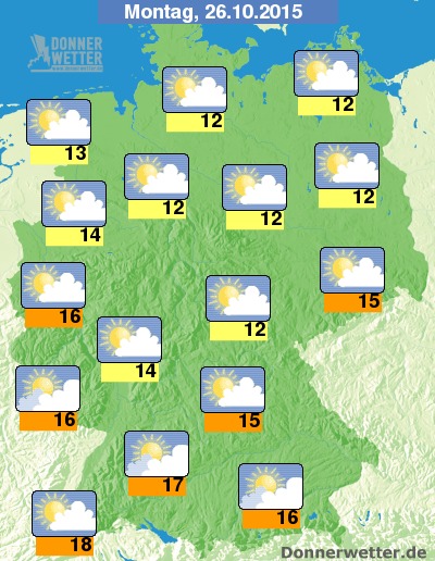 Am Montag ist es vor allem in der ersten Tageshälfte noch häufig stark bewölkt, nach und nach kann sich die Sonne jedoch besser durchsetzen und besonders im Süden und Westen ist es dann auch verbreitet sonnig, sonst gibt es meist einen Wechsel aus Sonne und Wolken, dabei bleibt es landesweit trocken. Die Temperatur steigt auf 12 Grad an der Müritz und bis 18 Grad im Breisgau.