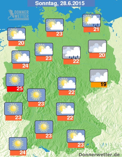 Am Sonntag halten sich im Osten und Nordosten und anfangs auch im Südosten der Republik dichte Wolken, die zeitweise Schauer, im Nordosten auch einzelne Gewitter bringen können. Im großen Rest des Landes ist es dagegen heiter, sehr oft auch sonnig und es bleibt dazu trocken. Die Temperatur steigt auf 19 Grad in der Lausitz und bis auf 25 Grad in Köln.
