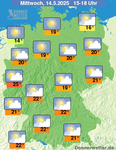 Temperaturen um 15 bis 25 Grad in der Spitze.
