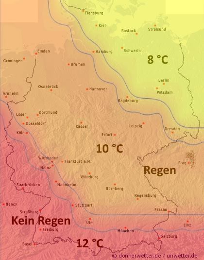 Am Abend ist der Himmel vor allem in der Süd- und Westhälfte dicht bewölkt oder bedeckt, östlich der Elbe sind die Chancen auf den ein oder anderen Sonnenstrahl am besten. Es bleibt trocken. Die Temperaturen liegen bei Werten um 8 Grad C bis 12 Grad C.