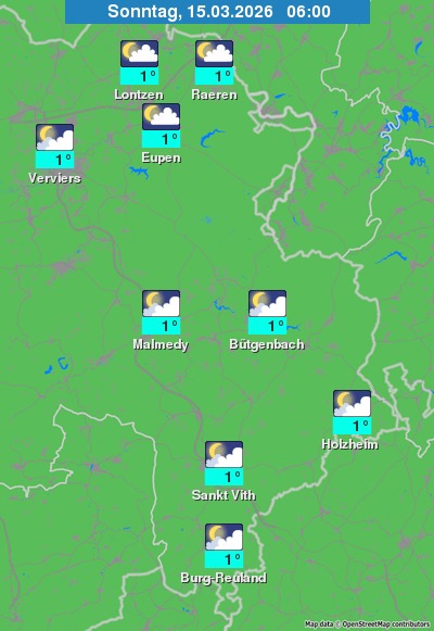 Das Wetter für die Deutschsprachige Gemeinschaft in Belgien aus dem