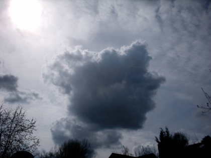 Die mittelhohen bis hohen Wolken (6-8 km hoch) sind ein Zeichen für Instabilität (Altocumulus-, aber teilweise auch Cirrocumulus-Wolken). Diese flockige Form verrät Turbulenzen in großen Höhen, die für eine instabile Atmosphäre sprechen. Schauer und Gewitter sind möglich.