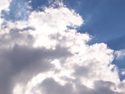Zu sehen ist im Vordergrund eine Cumulus mediocris Wolke, die bei weiterem Wachstum durchaus einen Schauer bringen kann. Die Wolke ist etwa 1 km hoch. Im Hintergrund sind Cirrus- und Altocumuluswolken, die sich in einer Höhe von etwa 6-9 km befinden.
