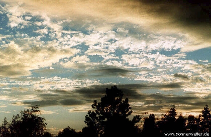 Was für ein schönes Bild: Altocumuluswolken in verschiedenen Höhenlagen, Schimmer in der Nachmittagssonne. Wir sehen hier Altocumulus perlucidus und Altocumulus lencticularis Wolken. Einiger der Altocumuluswolken sehen wie Haarbüschel aus. Es ist ein Tiefdruckgebiet. Die Atmosphäre ist sehr feucht und instabil. Vielleicht zieht eine Schlechtwetterfont mit Unwetter herein. Aber um ehrlich zu sein, ist dies ein Bild, bei dem ich selber nicht genau weiß, was als nächstes passieren wird.
