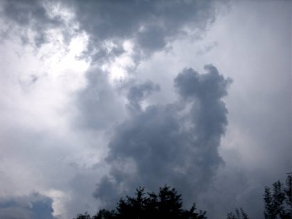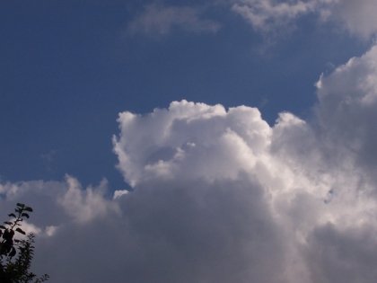 Zu sehen ist eine Stratocumuluswolke, die sich in 2 km Höhe über dem Grund befindet. Nur aus dieser Aufnahme heraus ist die Abschätzung der Wetterentwicklung schwierig. Diese Wolkenform tritt häufig auf. Es ist wichtig, die Veränderung der Wolken zu beobachten. Bei einer Verdichtung kann es zu einer Wetterverschlechterung kommen.