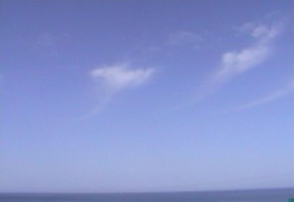 Dieses Bild zeigt eine Cirrus Wolke über dem ägäischen Meer. Man kann sehr deutlich erkennen, dass aus der Wolke, in 8 Kilometer Höhe, kleine Eiskristalle herausfallen und einen wunderschönen Fallstreifen bilden. Es sind keine anderen Wolken zu erkennen und es ist windstill.