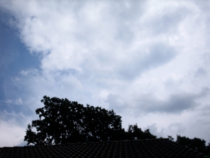 Beschreibung: Zu sehen ist der Aufzug von Stratocumuluswolken in der rechten Seite des Bildes. Links erkennt man Cirruswolken.