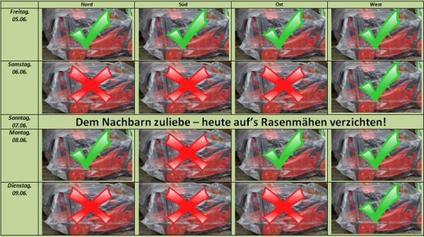 Dort, wo nicht vor allem am Samstag Schauer oder Gewitter den Kurzsommer stören, bieten sich gute Bedingungen für die Arbeit in der grünen Oase.