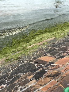 Algenteppiche überspannen riesige Wasser- und Küstenabschnitte