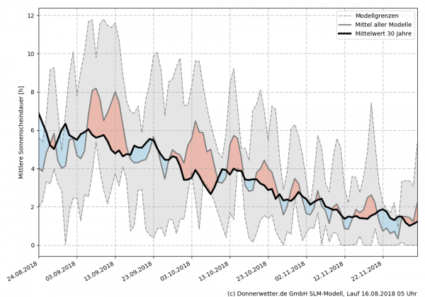 Nach einem insgesamt eher wechselhaften und kühlen Monatsausklang geht es im September mit zu milden Temperaturen weiter. Die meisten Sonnenstunden sind laut aktueller Berechnungen um die Monatsmitte herum zu erwarten.