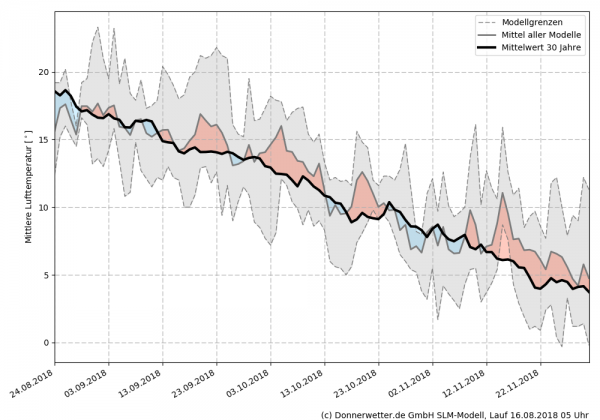 Unsere aktuellen Langfristprognosen für Lufttemperatur, Sonnenscheindauer und Niederschlagshöhe.