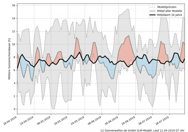 Unsere aktuellen Langfristprognosen für Lufttemperatur, Sonnenscheindauer und Niederschlagshöhe.