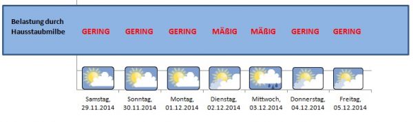 So entwickelt sich in den kommenden Tagen die Belastung durch Hausstaubmilben.
