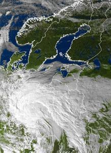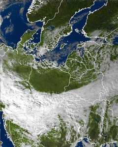 Dunkle Wolken über Osteuropa, Sturmböen an den Küsten