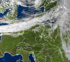 Satellitenbild: Dunkle Wolken zwischen Spanien und Schottland