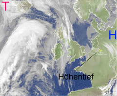 Wolken über der Nordsee und Norddeutschland trennen unterschiedlichen Luftmassen.