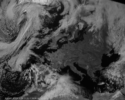 Auf dem heutigen Satellitenfoto erkennt man, dass ein Großteil Europas, von Frankreich bis zum Schwarzen Meer in Osteuropa und vom südlichen Skandinavien bis zum zentralen Mittelmeer in Südeuropa, praktisch wolkenlos oder nur gering bewölkt sind. Tiefdruckeinfluss sorgt dagegen vor allem auf der Iberischen Halbinsel, aber auch im nördlichen Skandinavien , im Westen Russlands und von der Türkei bis ins östliche Mittelmeer für meist viele Wolken und zeitweilige Schauer, zum Teil auch für Gewitter.