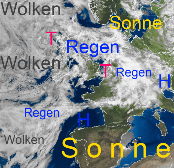 Blauen Himmel und viel Sonnenschein findet man über Südnorwegen, Südschweden, der Ostsee, bis nach Polen. Auch über Spanien und der westlichen Mittelmeerregion strahlt sie oft von einem wolkenlosen Himmel. Dazu gibt es hier auch hochsommerliche Temperaturen von teilweise deutlich über 30 Grad.