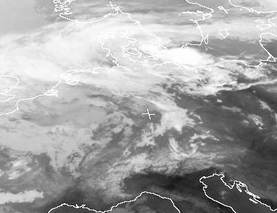 Das Wolkenbild über Deutschland am Montagmorgen sieht recht bunt gescheckt aus. Mit etwas Phantasie erkennt man eine S-förmige Wolkenkurve, die sich von Südschweden und Dänemark über die Nordsee und Norddeutschland hinweg bis zum Oberrhein erstreckt. Hier befindet sich die Grenze zwischen heißer, mediterraner Luft im Osten und einer etwas kühleren Luftmasse im Westen. In der Mitte der Kurve, über den Niederlanden und Niedersachsen befindet sich das Gewittertief 'Queenie'.