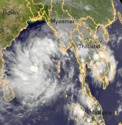 Über dem Golf von Bengalen liegt heute ein Wolkenwirbel, der von seiner Form her schon fast an einen Wirbelsturm erinnert. Zwar kommt es in seinem Bereich auch zu einigem Wind, dessen Stärke reicht aber noch nicht aus, dass das dieses Tiefdruckgebiet als Wirbel- oder Tropensturm identifiziert wird. Über Thailand und Malaysia befinden sich dagegen einige Gewitterzellen, weiter nach Norden hin ist es meist wolkenarm.